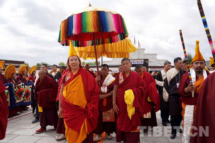 圖為班禪在手持黃傘、香爐的高僧引領下緩緩步行入寺 攝影:王淑