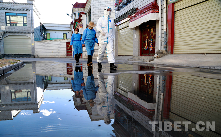 圖為孫彪和戰(zhàn)友拎著消殺完成的物資向索朗卓瑪家走去 攝影:鄭宏強