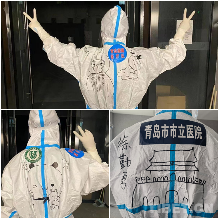中國(guó)西藏網(wǎng)訊 青島援藏醫(yī)療隊(duì)自8月17日進(jìn)藏以來(lái), 隊(duì)員們無(wú)論工作多累多難、高原反應(yīng)有多難受,都沒(méi)有一句怨言,依然堅(jiān)持在西藏自治區(qū)日喀則市戰(zhàn)“疫”一線。工作之余,來(lái)自青島市市立醫(yī)院本部ICU的鐘翔宇發(fā)揮出了她的“隱藏技能”——在醫(yī)療隊(duì)的“大白”身上畫(huà)上漫畫(huà),用表情包背到身上的方式給隊(duì)友們加油鼓勁兒。身著漫畫(huà)“戰(zhàn)袍”的隊(duì)員們斗志昂揚(yáng),朝氣蓬勃,互相鼓勵(lì)幫助,完成了一天天的工作任務(wù)。而這些古靈精怪的漫畫(huà),在戰(zhàn)“疫”一線也成了一道靚麗的風(fēng)景線。(中國(guó)西藏網(wǎng) 記者/次旦拉姆 由桑珠孜區(qū)融媒體中心供稿)