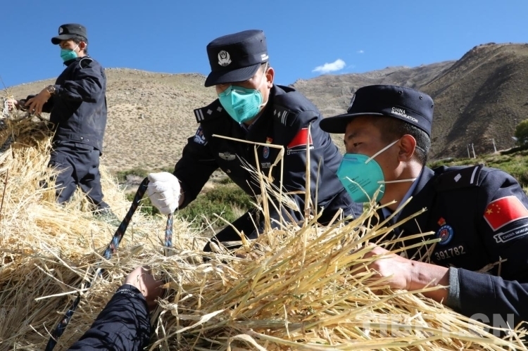 原來,西藏普蘭出入境邊防檢查站斜爾瓦執(zhí)勤點(diǎn)移民管理警察在入戶走訪過程中了解到,現(xiàn)在正值秋收,老阿媽米瑪?shù)膬蓚€(gè)兒子都在外地打工,趕不回來,她只能獨(dú)自望著自家成熟的青稞犯愁。了解到情況后,該站副站長(zhǎng)貢秋頓珠立刻組織帶領(lǐng)移民管理警察連續(xù)3天到老阿媽米瑪?shù)牡乩锸崭?、捆綁、搬運(yùn)青稞,將5畝地的青稞顆粒全部歸倉(cāng),解了老人的燃眉之急。