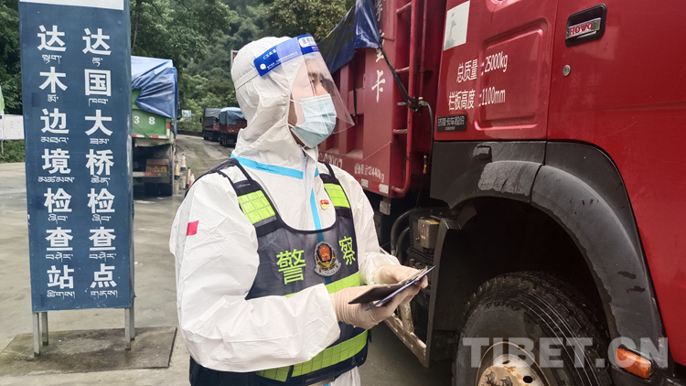 8點,雨季的墨脫,太陽難得露了臉。達(dá)木邊境檢查站民警卓井山和李建已經(jīng)穿上防護(hù)服,戴好口罩,站在路邊,開始了一天忙碌的工作?!巴灸茫埑鍪灸倪吘惩ㄐ凶C、健康碼、行程碼和核酸檢測報告?!弊烤骄戳藗€禮,認(rèn)真核查車中人員的信息后,又對車內(nèi)進(jìn)行了仔細(xì)的檢查,確保沒有違禁物品,最后對司機(jī)大哥說:“最近雨季,道路濕滑,路上注意安全,再見!”