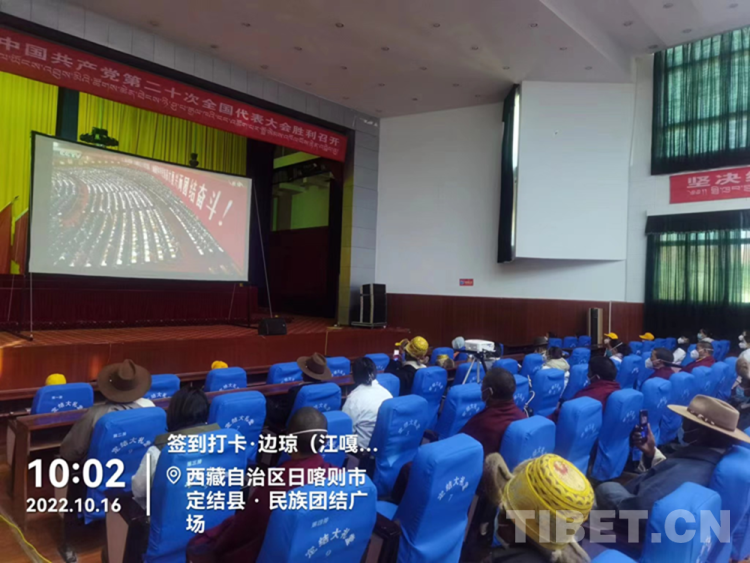 圖為10月16日上午,西藏自治區(qū)日喀則市定結縣各族干部群眾收看黨的二十大開幕會直播