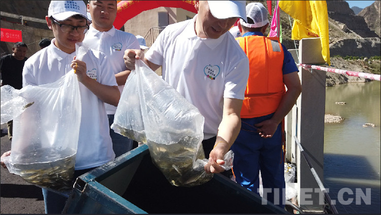 圖為工作人員進(jìn)行增殖放流
