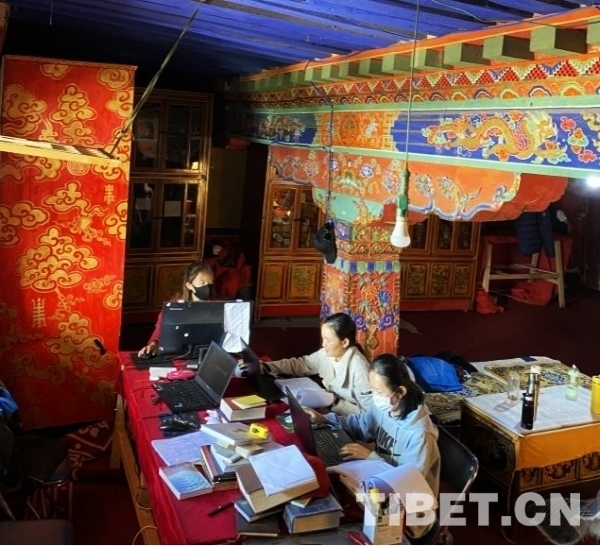 圖為2021年,西藏民族大學實習生對布達拉宮藏經(jīng)進行記錄和統(tǒng)計