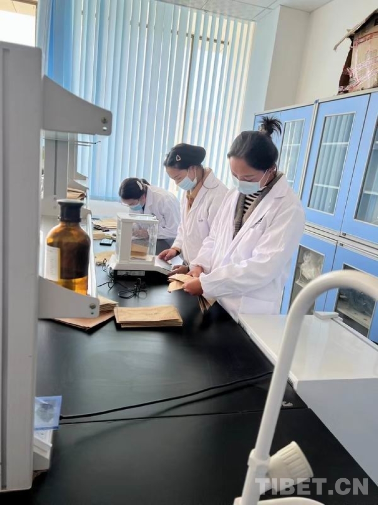 圖為西藏自治區(qū)農(nóng)牧科學院草業(yè)科學研究所科技人員在開展野生牧草種子生理試驗