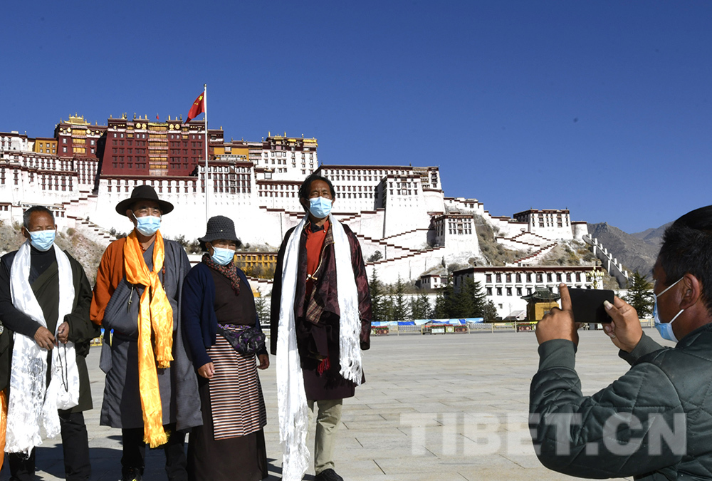 圖為2022年12月初,拉薩市各旅游景點(diǎn)恢復(fù)開放,游客在布達(dá)拉宮廣場拍照留念 攝影:王媛媛