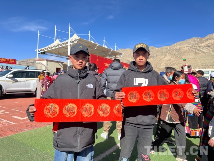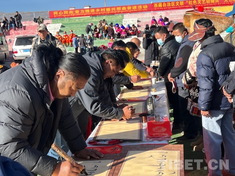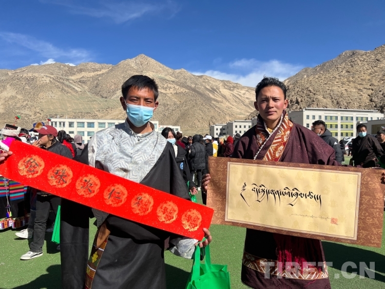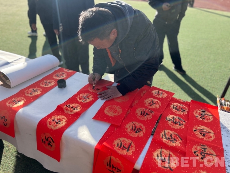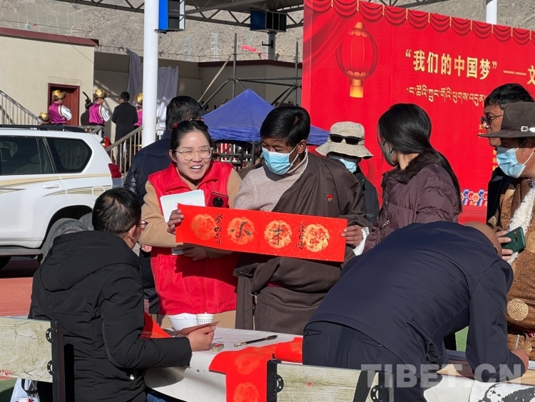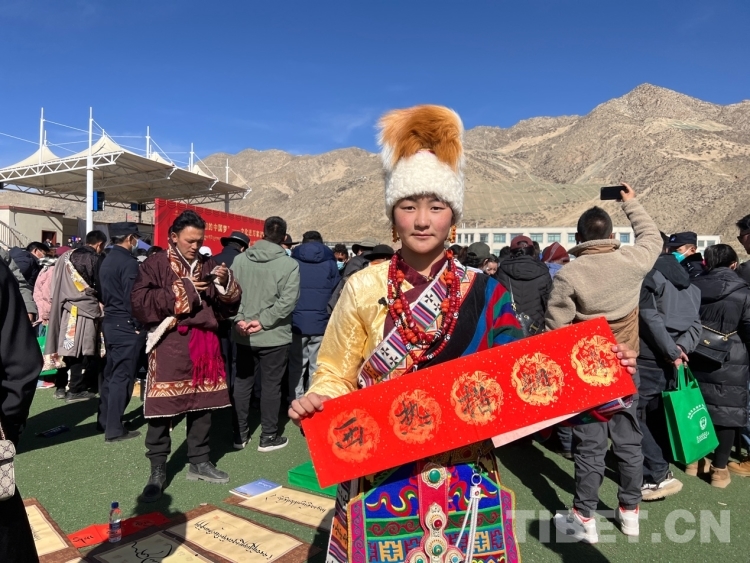 中國(guó)西藏網(wǎng)訊 2月16日,西藏自治區(qū)文聯(lián)主辦的“我們的中國(guó)夢(mèng)”——文化進(jìn)萬(wàn)家活動(dòng)在極高海拔生態(tài)搬遷安置點(diǎn)開(kāi)展。在送“書法”現(xiàn)場(chǎng),由西藏書法協(xié)會(huì)和山南市11位書法家為當(dāng)?shù)厝罕娝腿?00多張?jiān)⒁饷篮玫男履曜8:腿罕娖谕男履曜T傅??;顒?dòng)現(xiàn)場(chǎng)群眾絡(luò)繹不絕,大家心滿意足地拿著書法家為自己贈(zèng)送的精美“禮品”。一旁書法家們忙碌地為群眾書寫祝詞,另一旁群眾們晾曬著他們得到的書法作品,一時(shí)間現(xiàn)場(chǎng)成了“書法展”,時(shí)不時(shí)地有人前來(lái)參觀欣賞。(中國(guó)西藏網(wǎng) 記者/德吉卓瑪)