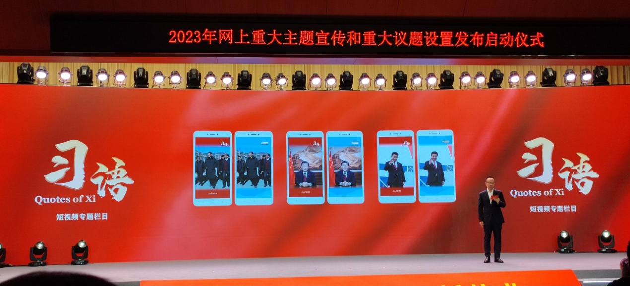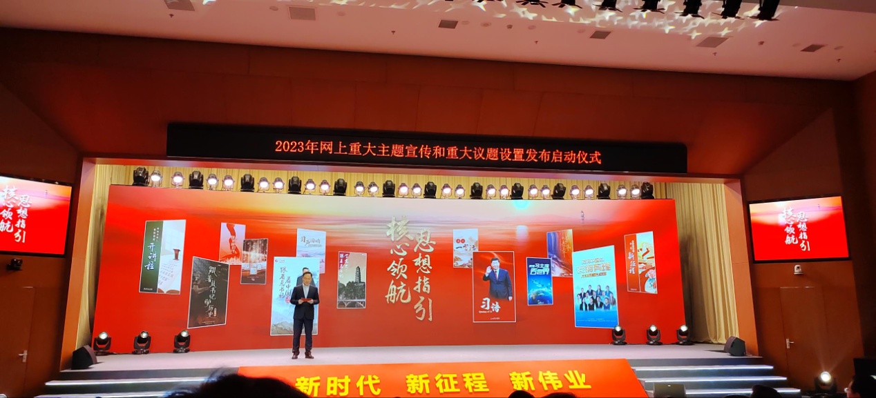 圖為“團結(jié)奮進新征程 奮楫揚帆再出發(fā)”2023年網(wǎng)上重大主題宣傳和重大議題設置發(fā)布啟動儀式主會場