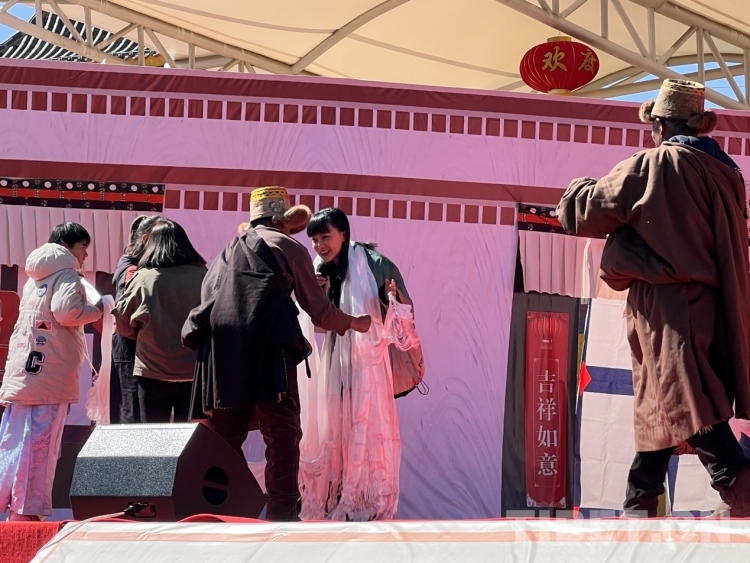 圖為當(dāng)?shù)厝罕姙榍嗄旮枋贮S齡獻(xiàn)哈達(dá) 攝影:次旦拉姆