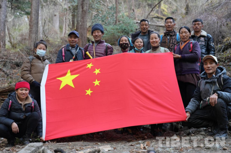圖為玉麥鄉(xiāng)巡邊群眾巡邊路上展示國旗 攝影:趙振宇