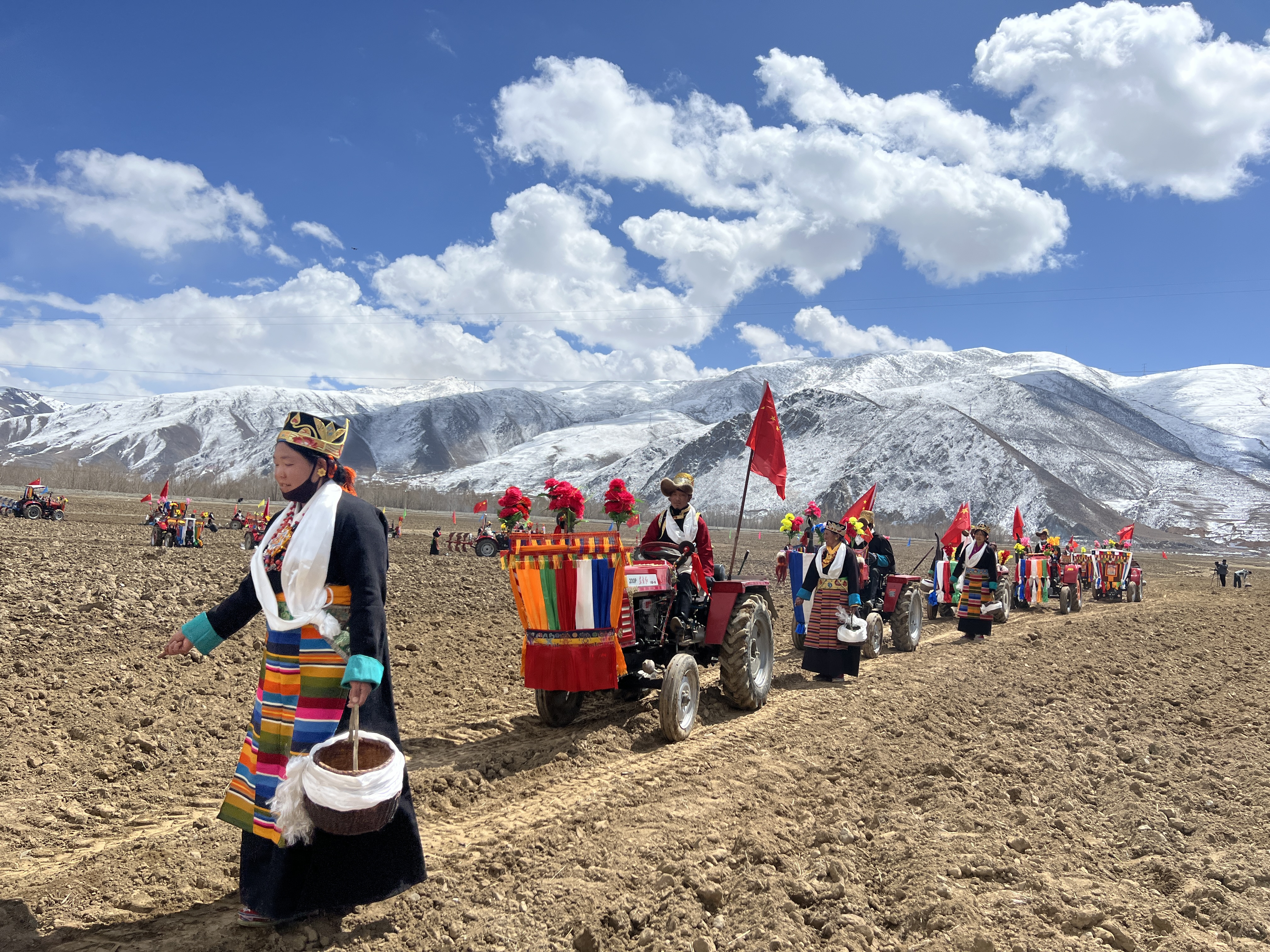 驚蟄過后,祖國各地,大江南北,陸續(xù)進(jìn)入春耕階段,人們帶著新一年的盼望在田壟上開始新一年的耕耘。春耕,在西藏農(nóng)民的眼中,是一年之中最隆重的農(nóng)事活動之一。換上嶄新的藏裝,帶上釀好的青稞酒,手捧自家的“切瑪”(象征五谷豐登),全村人聚在田間舉行春耕前盛大隆重的開耕儀式。唱起“諧青”祈愿歌,伴隨轟隆隆的農(nóng)機(jī)聲音,抒發(fā)著春耕帶來的無限喜悅和希望。