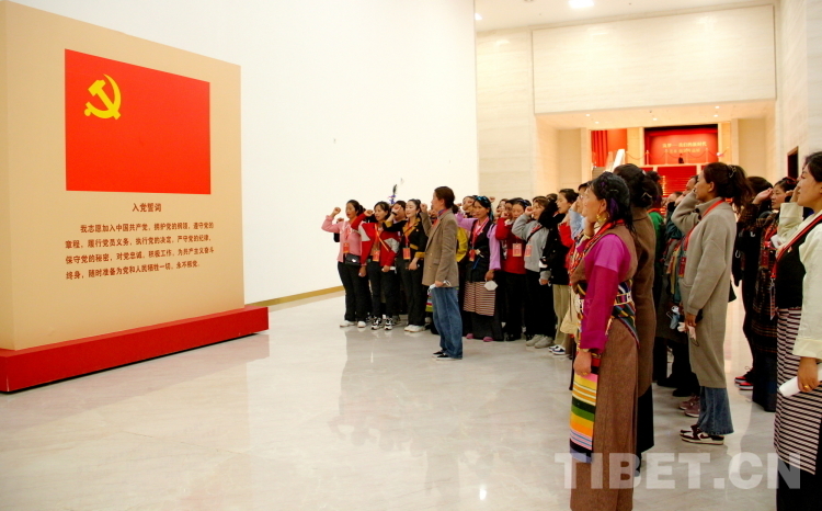 圖為“2023年西藏基層婦聯(lián)干部赴京學(xué)習(xí)參觀團”成員們在中國共產(chǎn)黨歷史展覽館重溫入黨誓詞 攝影:劉莉