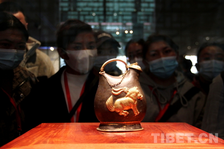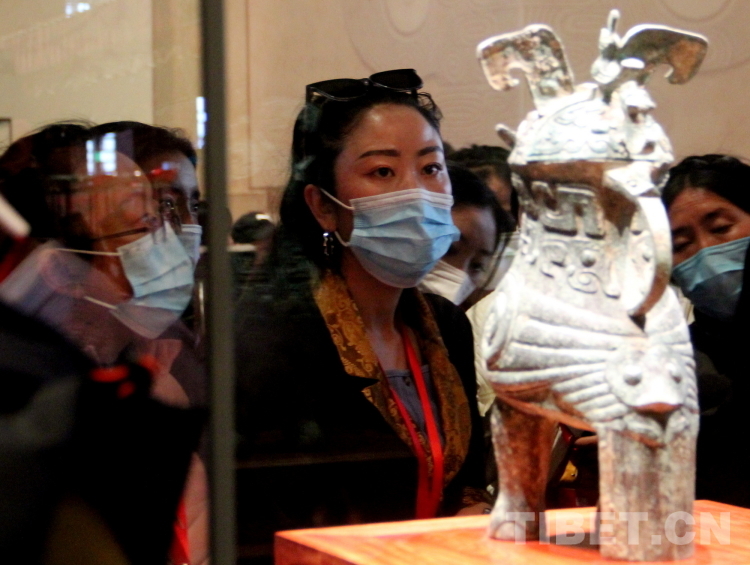 圖為2023年西藏基層婦聯(lián)干部赴京學(xué)習(xí)參觀團成員們在中國工藝美術(shù)館·中國非物質(zhì)文化遺產(chǎn)館內(nèi)欣賞唐代文物鎏金舞馬銜杯紋銀壺的復(fù)制件 攝影:劉莉