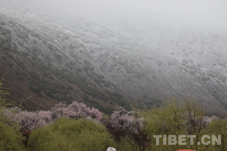 圖為風(fēng)雪中的林芝桃花 攝影:王茜