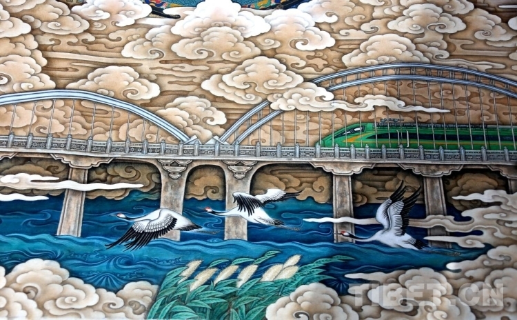 據(jù)介紹,自西藏和平解放以來,在黨和國家的政策扶持下,西藏的唐卡藝術(shù)得到了很好的傳承和發(fā)展,傳統(tǒng)唐卡的五大畫派在各自的創(chuàng)作領(lǐng)域都有很高的藝術(shù)成就,但是傳統(tǒng)唐卡的各大畫派集中創(chuàng)作的形式從未有過,用傳統(tǒng)唐卡描繪新西藏的盛世圖景更是空白。迫切地需要西藏本土的美術(shù)工作者擔起文化使命感,用民族美術(shù)的載體歌頌偉大的中華民族、歌頌我們所處的美好時代、歌頌來之不易的美好生活。大型唐卡壁畫《高原明珠》應運而生。