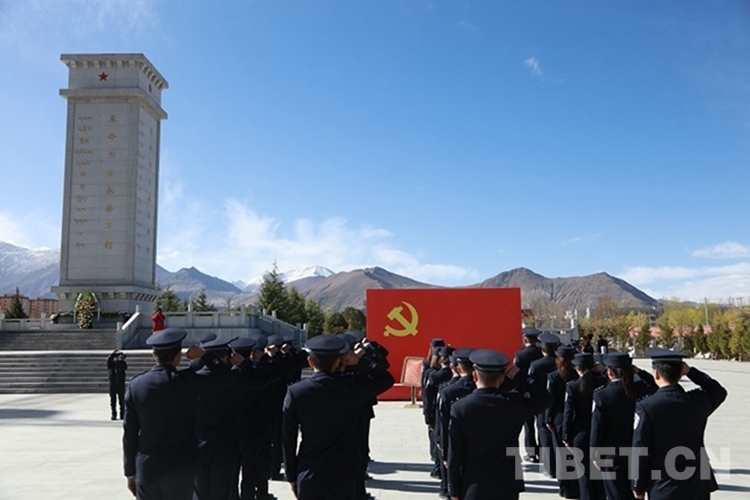 圖為西藏邊檢總站執(zhí)法調(diào)查支隊(duì)民警在烈士紀(jì)念館瞻仰烈士英雄事跡