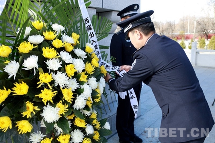 圖為西藏邊檢總站執(zhí)法調(diào)查支隊(duì)民警為旦增阿旺烈士擦拭墓碑、敬獻(xiàn)鮮花