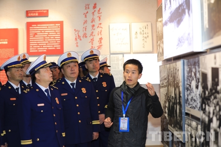 圖為西藏森林消防總隊代表們?yōu)榱沂勘杓t