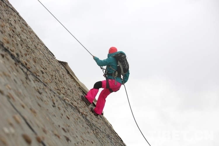 圖為登山隊專業(yè)教練對山友們進(jìn)行登山技術(shù)培訓(xùn) 攝影:德吉卓瑪