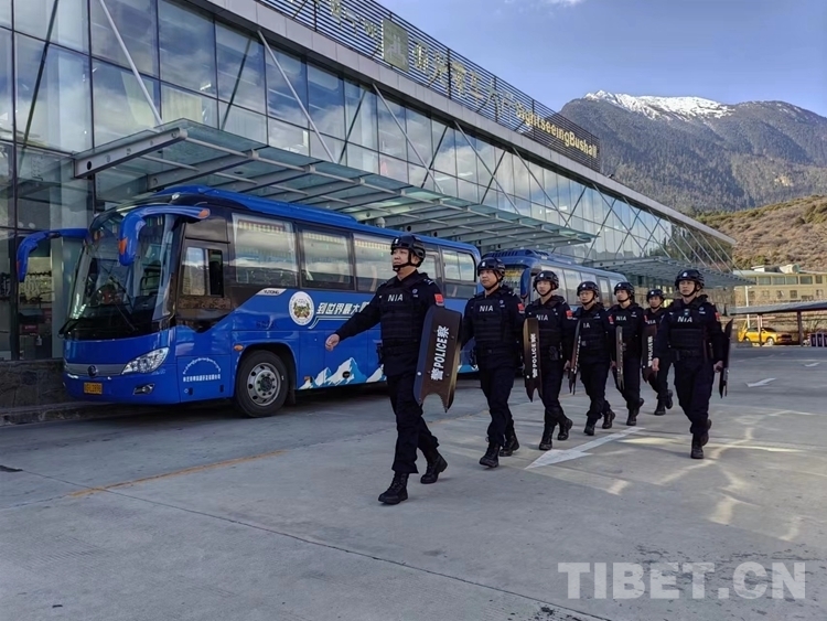 圖為林芝邊境管理支隊基層單位民警在景點巡邏 攝影:江才云旦