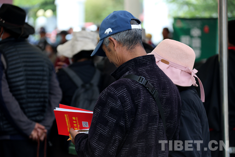圖為一名群眾正在仔細閱讀剛剛領(lǐng)取的宣傳手冊 攝影:王佳豪