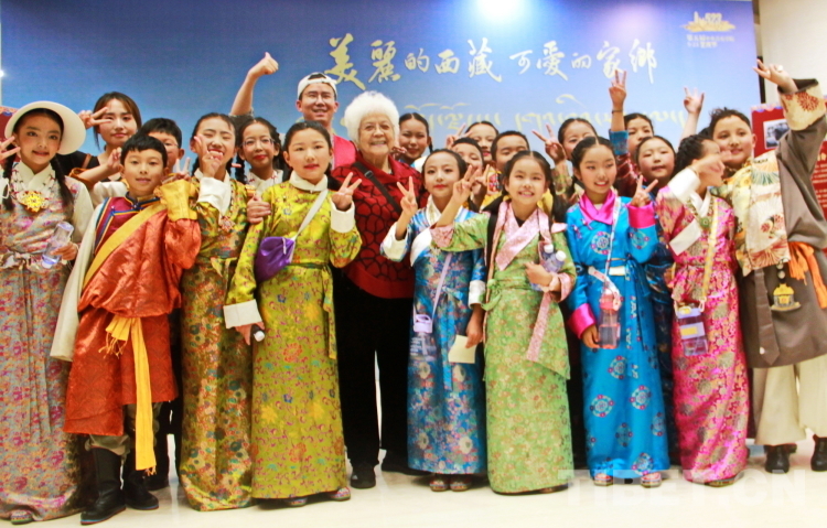 圖為《洗衣歌》編導(dǎo)、詞作者李俊琛(前排左五)與西藏珠峰少年合唱團的小朋友們合影 攝影:劉莉