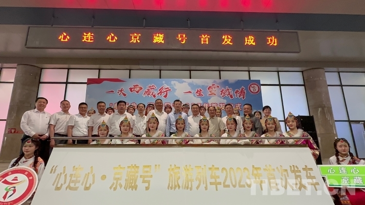 圖為“心連心·京藏號(hào)”2023年旅游列車首發(fā)儀式現(xiàn)場(chǎng)