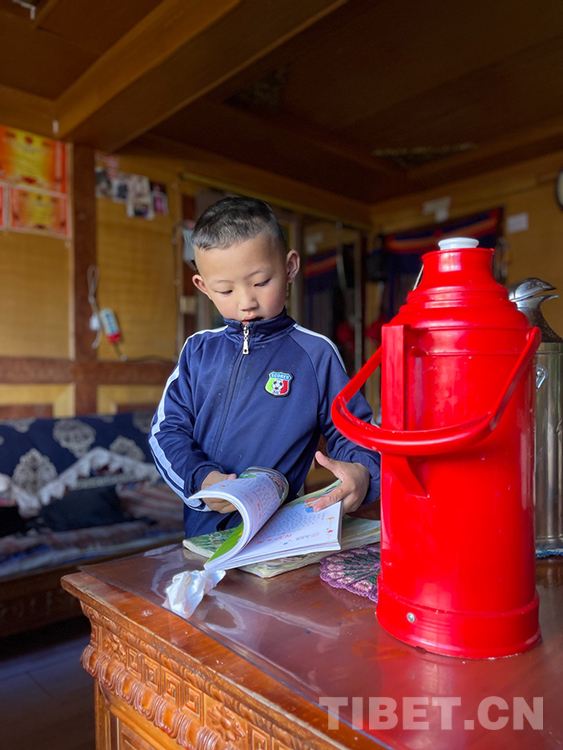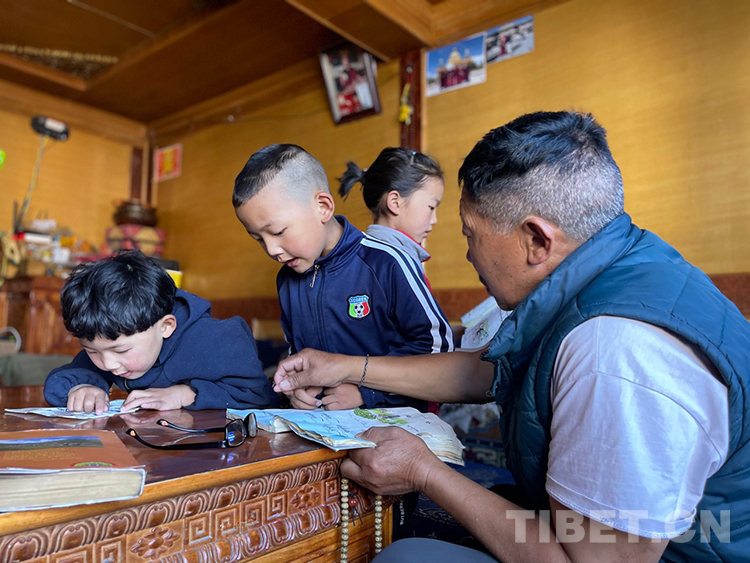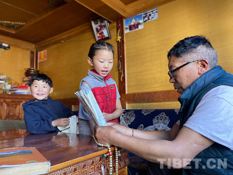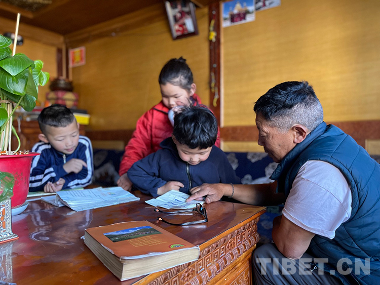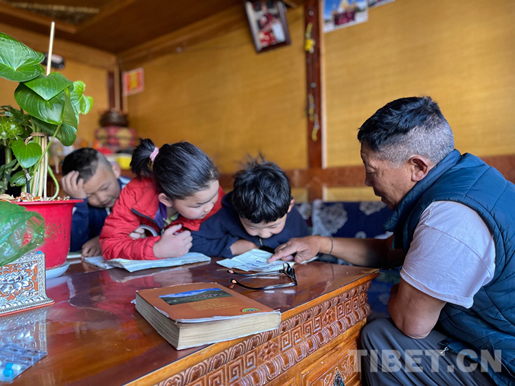 阿噶大爺自己粗通藏文,能督促和檢查藏文作業(yè),孩子們則非常享受爺爺驗收他們的學(xué)習(xí)成果,每次都爭先恐后地請爺爺聽自己的發(fā)音和背誦是否準確。平時老師還會安排上網(wǎng)課,因此不會耽誤他們的學(xué)業(yè)。