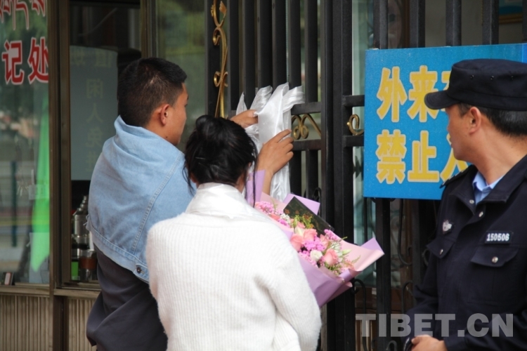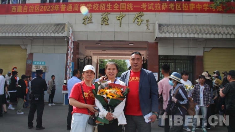 6月8日下午,在拉薩中學(xué)考場(chǎng)外,家長們穿著藏裝、旗袍、印有“金榜題名”“旗開得勝”等加油短袖,手捧鮮花和哈達(dá)迎接第一波結(jié)束高考的考生?!敖裉?,閨女終于要結(jié)束高中生活了,希望她能如愿考上軍校?!眲?span style="background-color: rgb(255,255,255)">先生夫婦穿著專門為女兒定制的加油短袖,備好鮮花到考場(chǎng)外迎接女兒。像他們一樣,考場(chǎng)外拿著鮮花與哈達(dá)、祝賀橫幅、勵(lì)志牌等的考生家屬和親戚漸漸多了起來。