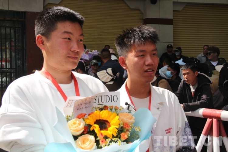 圖為張錦陽和陳思杰結(jié)束考試后在考場(chǎng)外合影留念 攝影:德吉卓瑪