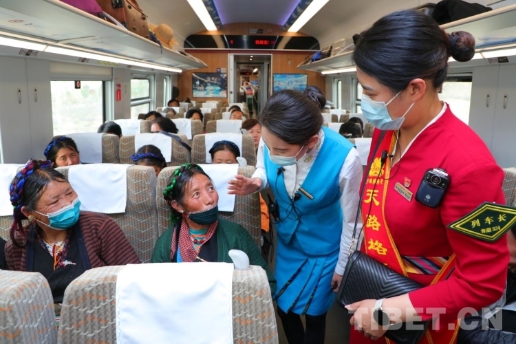 2022年初,青藏集團公司在管內(nèi)各站、車開展“天路格?;ā逼放苿?chuàng)建以來,拉林鐵路各車站、各次列車上都能看到“天路格?;ā狈?wù)隊員,他們用真誠、熱情、熱心為每一位旅客提供溫馨細致的服務(wù)。