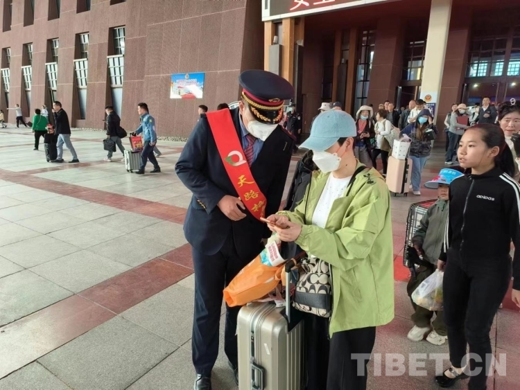 中國西藏網(wǎng)訊 2023年6月25日,拉薩火車站、林芝火車站內(nèi)異常熱鬧。在拉薩火車站,準備乘坐C925次旅客列車前往林芝的旅客和車站“天路格桑花”服務(wù)隊的工作人員一起開展著競答互動小游戲,復(fù)興號列車紀念筆、車站卓瑪工作室卡通形象鑰匙扣、旅行雜志等小禮品深受旅客喜愛。在林芝火車站,工作人員和旅客跳起了熱情的鍋莊,用特有的方式慶祝拉林鐵路開通兩周年。