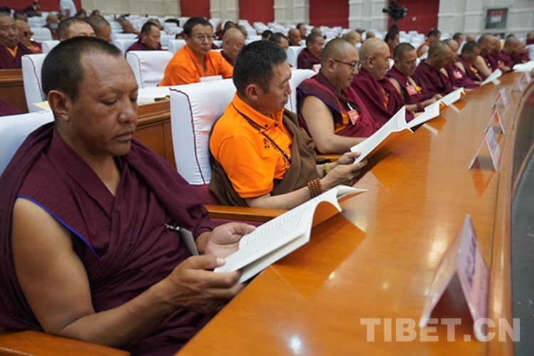 班禪說,藏傳佛教在長期發(fā)展過程中產(chǎn)生了浩如煙海的經(jīng)典,內(nèi)容非常豐富。研究發(fā)掘藏傳佛教經(jīng)典、弘揚中華優(yōu)秀傳統(tǒng)文化、實現(xiàn)藏傳佛教健康傳承是高僧活佛應(yīng)該擔(dān)當(dāng)?shù)臍v史使命。他要求,高僧活佛要恪守普度眾生的核心要義,秉承“上求佛道、下化眾生、莊嚴(yán)國土、利樂有情”的根本宗旨,踐行護(hù)國利民的重大要求,加強聞思修、提升講辯著,精進(jìn)學(xué)識、精思漸悟,深入領(lǐng)會藏傳佛教經(jīng)典的核心要義,融會貫通,把握其中蘊含的深刻哲理,不馳于空想、不騖于虛聲,把佛教教義與自身實際、歷史背景與社會現(xiàn)實有機結(jié)合起來進(jìn)行綜合思考,形成符合時代進(jìn)步要求的認(rèn)識、符合藏傳佛教傳承需要的見解,通過佛之真理,解眾生之惑,以更強的使命責(zé)任投入到教義闡釋中,綿綿用力,久久為功,一步一個腳印為推進(jìn)藏傳佛教中國化作出不懈努力。