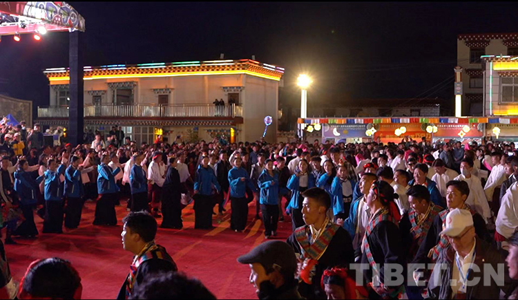 歌舞晚會(huì)結(jié)尾時(shí),出席晚會(huì)的嘉賓同現(xiàn)場(chǎng)的一千余名群眾及演職人員踩著優(yōu)美動(dòng)聽的弦音,共跳曾榮創(chuàng)“最大弦子舞教學(xué)課堂”世界紀(jì)錄認(rèn)證,集文化、歷史、民俗元素于一身的弦子舞。(中國(guó)西藏網(wǎng) 供稿/芒康縣藝術(shù)節(jié)組委會(huì)辦公室)