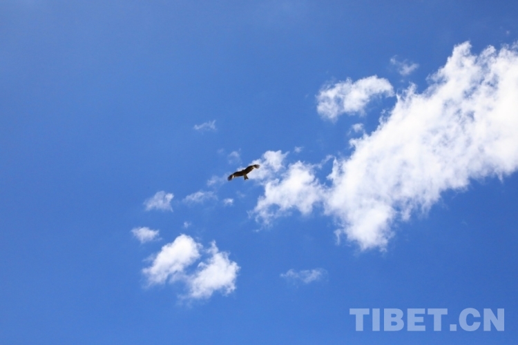 圖為藍(lán)天上盤(pán)旋的雄鷹 攝影:王茜