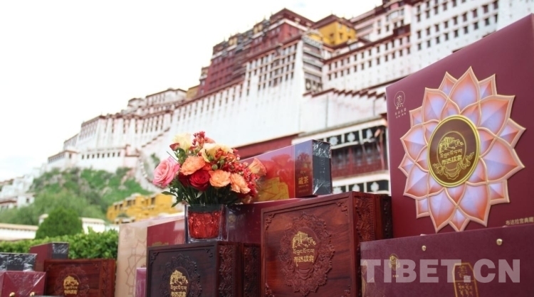 圖為姜氏家族向布達(dá)拉宮捐贈金絲楠木盒典藏茶