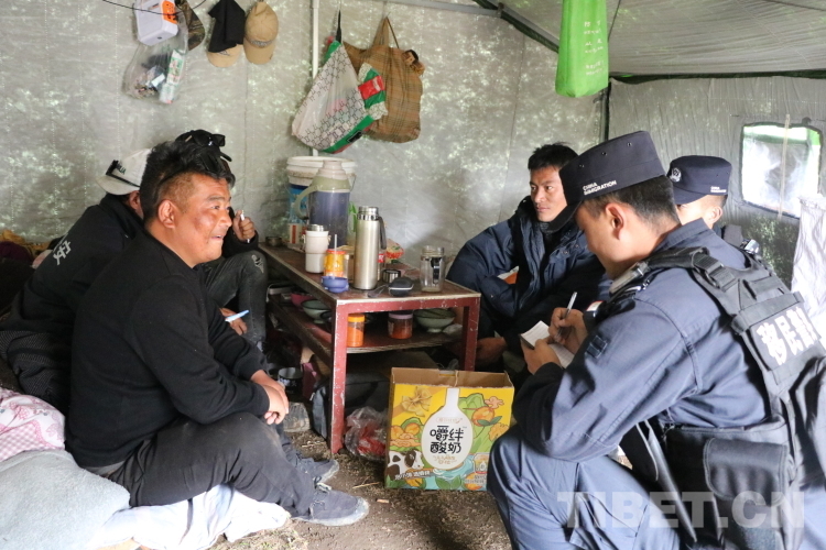 圖為林芝臥龍邊境派出所民警在蟲(chóng)草采挖區(qū)為群眾宣傳法律知識(shí) 攝影:張正華