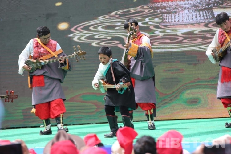 多白鄉(xiāng)方隊區(qū)別于其他鄉(xiāng)鎮(zhèn)方隊,他們身著藏戲表演服飾,方隊行進(jìn)至主席臺前,背景音樂暫停,緊接著一段富含感情的藏戲說唱回蕩在會場之內(nèi)。多白鄉(xiāng)方隊領(lǐng)隊普布說:“我們鄉(xiāng)的農(nóng)牧民群眾專門為此次活動寫了一段‘頌詞’,這里面抒發(fā)了我們多白鄉(xiāng)各族干部群眾對活動舉辦的期待和欣喜,以及對黨和國家的歌頌。多白鄉(xiāng)的仁青丁村是唐東杰布的出生地,以藏戲表演的方式入場,是多白鄉(xiāng)各族干部群眾的共同呼聲。這段‘頌詞’更是唱出了多白鄉(xiāng)各族干部群眾的內(nèi)心所想?!?/p>