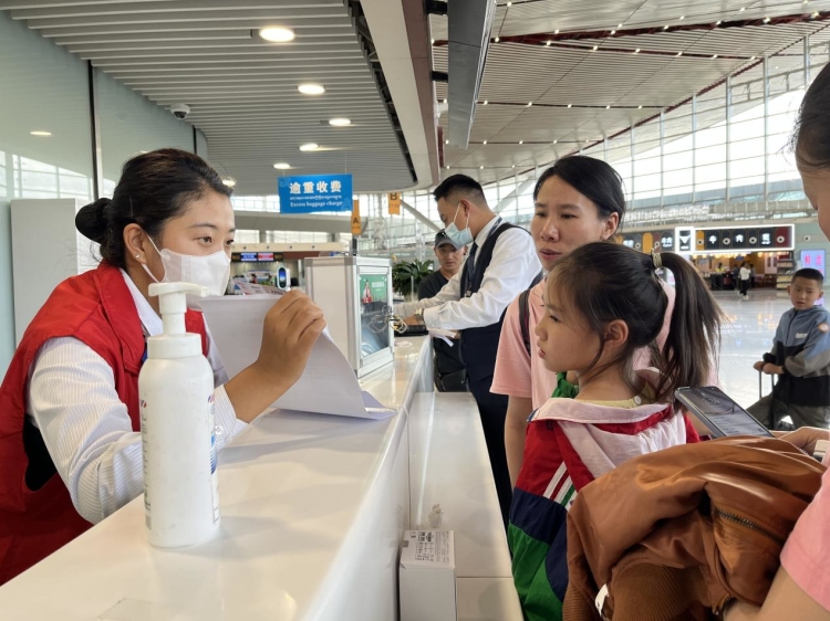 同時,拉薩貢嘎機場為滿足“暑運”期間旅客多樣化出行需求,以便民、惠民、利民為出發(fā)點,先后推出“首次乘機、無憂暢行”的首乘服務、“交流無邊界,服務零距離”的漢藏雙語服務、“無陪兒童”“無陪老人”服務、快線專屬中轉值機服務、自助行李托運服務、逾重行李收費電子化服務等便民舉措,有效提升了旅客出行體驗。針對暑期航班密集、出現(xiàn)人流“井噴”,拉薩貢嘎機場在高峰時期加強保障人員力量,增添機關突擊隊志愿人員,及時管控、主動引導、耐心解答。在車水馬龍、人頭攢動的航站樓內,“志愿紅”們用最美微笑和貼心服務為出行旅客送去一縷清涼。
