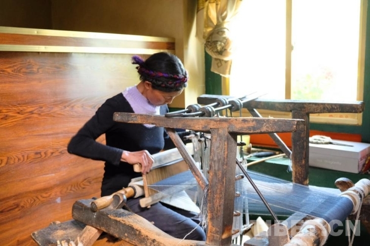 走進(jìn)氆氌紡織間,隊(duì)員們看到木質(zhì)的紡織機(jī)在吱嘎作響,工人左右手快速地配合,雙腳在幾個(gè)踏板間有條不紊地轉(zhuǎn)換,雙眼緊隨著雙手快速地游移目光,嫻熟程度令人嘆為觀(guān)止。