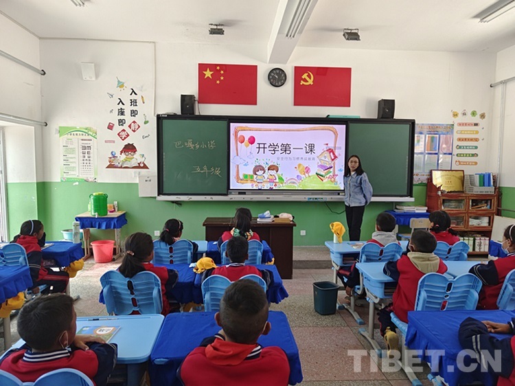圖為巴嘎鄉(xiāng)小學(xué)開學(xué)第一課 圖片由西藏民族大學(xué)財經(jīng)學(xué)院提供