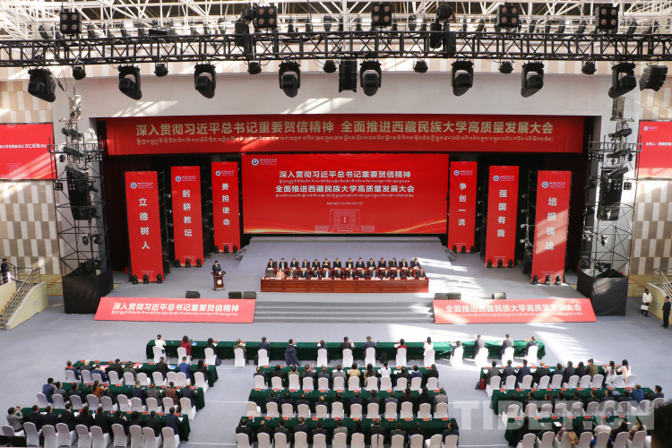圖為深入貫徹習(xí)近平總書記重要賀信精神、全面推進西藏民族大學(xué)高質(zhì)量發(fā)展大會現(xiàn)場