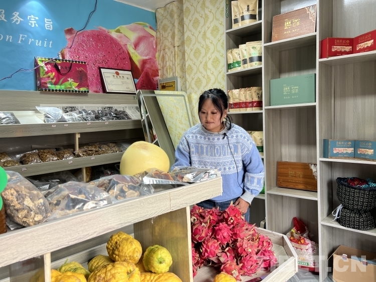在墨脫縣德興鄉(xiāng)德興村村民西繞措姆的店里,我們看到了整齊擺放的火龍果、香蕉等熱帶水果。在整個墨脫縣,他們夫妻兩人是第一家,也是唯一一家規(guī)范種植火龍果的農(nóng)戶。“那個時候我老公剛大學(xué)畢業(yè),在短視頻上看到有人在種火龍果,他就從網(wǎng)上買了火龍果苗,自己看著視頻學(xué)習(xí)種植?!?020年夫妻兩人迎來了第一個火龍果收獲季,2022年他們獲得政府民生實事扶持大學(xué)生資金30萬元,種植規(guī)模也擴大到了23畝。