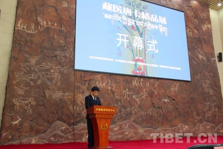 中國(guó)藏學(xué)研究中心北京藏醫(yī)院院長(zhǎng)仲格嘉在開(kāi)幕式致辭中介紹,起源和根植于中華民族的藏醫(yī)藥,是我國(guó)中醫(yī)藥學(xué)寶庫(kù)中的一顆璀璨明珠。藏醫(yī)藥迄今已有3800多年的發(fā)展歷史,在藏醫(yī)學(xué)史上形成了別出心裁的藏醫(yī)唐卡。藏醫(yī)唐卡以浩瀚畫(huà)卷,形象生動(dòng)、系統(tǒng)地描繪了藏醫(yī)藥學(xué)的體系框架、基礎(chǔ)理論、臨床實(shí)踐技法,以及藏醫(yī)史、醫(yī)德醫(yī)風(fēng)、養(yǎng)生保健等內(nèi)容。除了藏醫(yī)教學(xué)的實(shí)用價(jià)值外,藏醫(yī)唐卡還有很高的民族學(xué)、歷史學(xué)、宗教學(xué)及美學(xué)價(jià)值,其卷幅之多、內(nèi)容之廣博、構(gòu)思之巧妙、畫(huà)工之精湛,堪稱(chēng)學(xué)習(xí)藏醫(yī)藥學(xué)的百科全書(shū)。