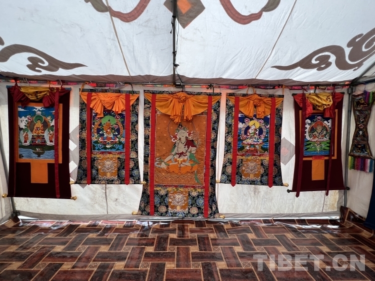 一針一線一幅畫,一時一日一春秋。在潔白的帳篷里,不時有游客進出,欣賞著夫妻二人所制作的白度母珍珠唐卡、布達拉宮堆繡唐卡、“四講四愛”刺繡唐卡等精美作品。土旦旦增與次旦卓瑪手下不僅僅是飛針走線,更是“繡出”他們的美好生活。(中國西藏網(wǎng) 記者/德吉卓瑪)