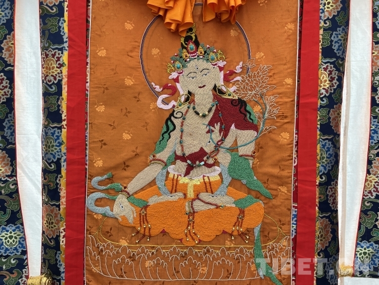 堆繡是唐卡的一種,藏語稱之為“格直卜”或“規(guī)唐”。據(jù)《中國美術(shù)史》記載,堆繡是由刺繡藝術(shù)發(fā)展而來,融入了刺繡工藝的布貼藝術(shù),起源于唐朝。在中國除了蘇繡、湘繡、粵繡和蜀繡這"四大名繡"外,還有京繡、魯繡、杭繡、閩繡等地方名繡,我國的少數(shù)民族如維吾爾族、彝族、壯族、蒙古族、藏族等也都有自己獨特風(fēng)格的民族刺繡。藏繡,亦是中國少數(shù)民族傳統(tǒng)文化中最具特色的刺繡派系之一,它源于公元九世紀(jì),與唐卡、堆繡并稱為藏傳佛教三大藝術(shù)。