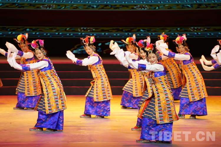 圖為山南市貢嘎縣東拉鄉(xiāng)吉瓊村文藝隊(duì)正在演出的舞蹈《圣地囊瑪》 攝影:趙振宇