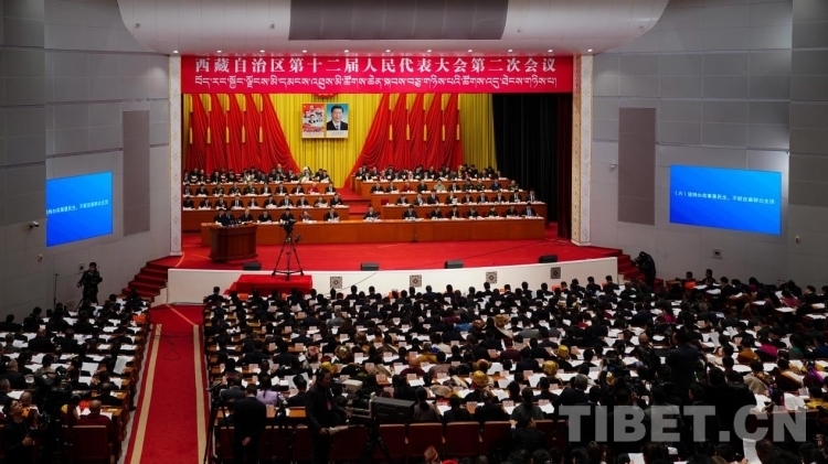 圖為西藏自治區(qū)第十二屆人民代表大會(huì)第二次會(huì)議開幕會(huì)現(xiàn)場(chǎng) 攝影:王淑