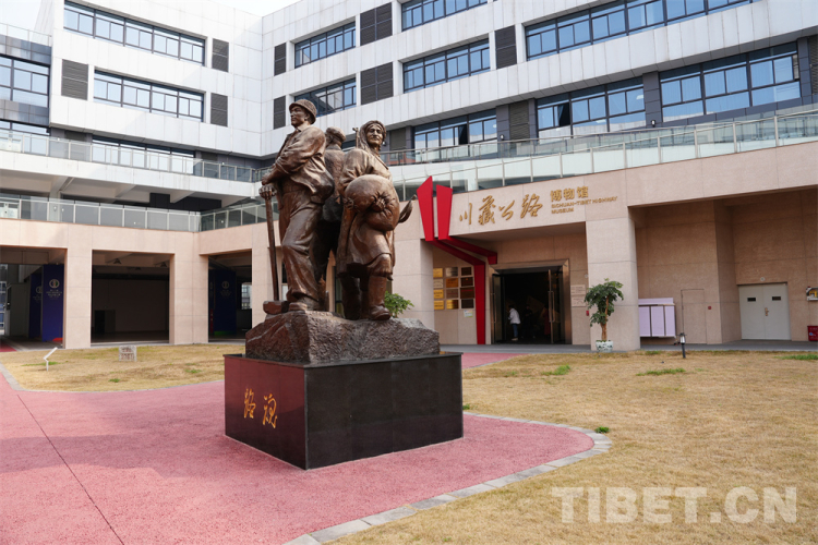 圖為川藏公路博物館的大門(mén),門(mén)口的“路魂”雕塑象征著十多萬(wàn)筑路大軍,也象征著軍民團(tuán)結(jié)、漢藏一家的民族友誼 攝影:陳