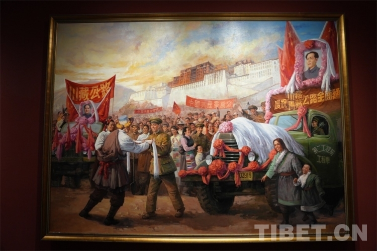 圖為順利會(huì)師紀(jì)念油畫(huà),畫(huà)中為慶祝川藏、青藏公路全面通車(chē)的歡慶場(chǎng)景 攝影:陳